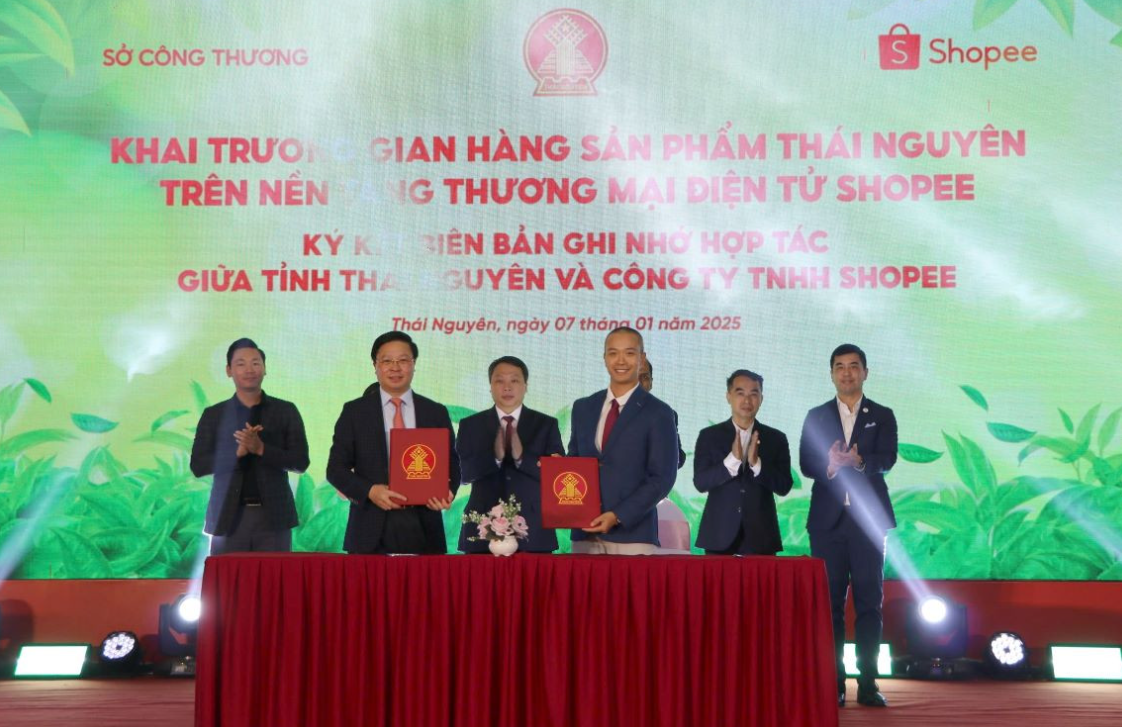 Ngày 7/1/2025 - Một cột mốc quan trọng đánh dấu sự chuyển mình mạnh mẽ của tỉnh Thái Nguyên trên hành trình phát triển thương mại điện tử đã chính thức được khởi động. Buổi sáng hôm nay, UBND tỉnh Thái Nguyên đã long trọng tổ chức lễ khai trương Gian hàng sản phẩm Thái Nguyên trên sàn thương mại điện tử Shopee, đồng thời ký kết Biên bản ghi nhớ hợp tác chiến lược với Công ty TNHH Shopee Việt Nam. Sự kiện không chỉ là một buổi lễ thông thường, mà còn là sự khởi đầu cho một cuộc cách mạng số, mang theo kỳ vọng đưa các sản phẩm đặc trưng của Thái Nguyên vươn xa hơn trên thị trường trong nước và quốc tế.