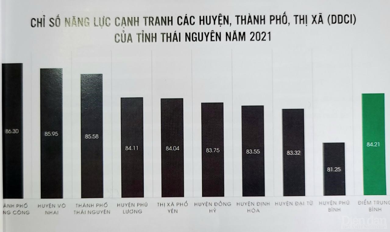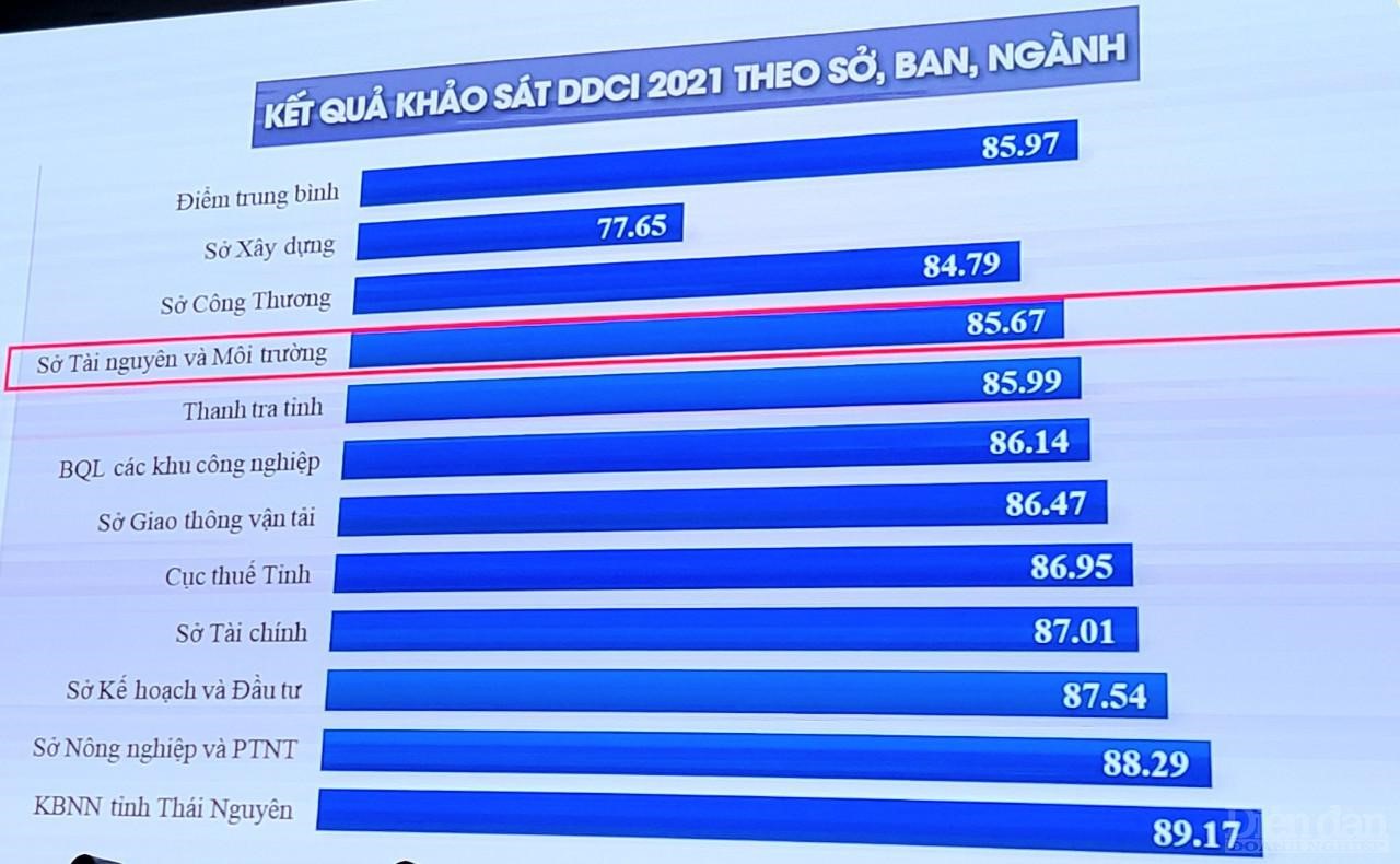 Với khối sở, ban, ngành, đơn vị có điểm số cao nhất là Kho bạc Nhà nước tỉnh với 89,17 điểm; thấp nhất là Sở Xây dựng 77,65 điểm. Đối với khối địa phương, điểm trung bình chung là 84,21 điểm. TP. Sông Công là đơn vị dẫn đầu với 86,3 điểm; thấp nhất là huyện Phú Bình 81,25 điểm. Nhìn vào kết quả trên có thể thấy, so với PCI, điểm số của DDCI cao hơn hẳn, thậm chí đơn vị dẫn đầu còn tiệm cận khá gần với thang điểm tối đa và tất cả đều được xếp trong thứ hạng Tốt.