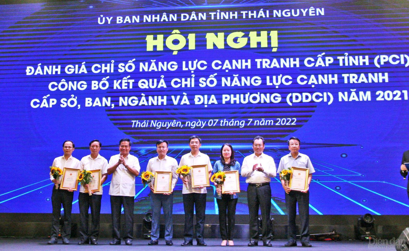 Lãnh đạo UBND tỉnh Thái Nguyên trao Giấy chứng nhận cho các đơn vị có chỉ số DDCI cao