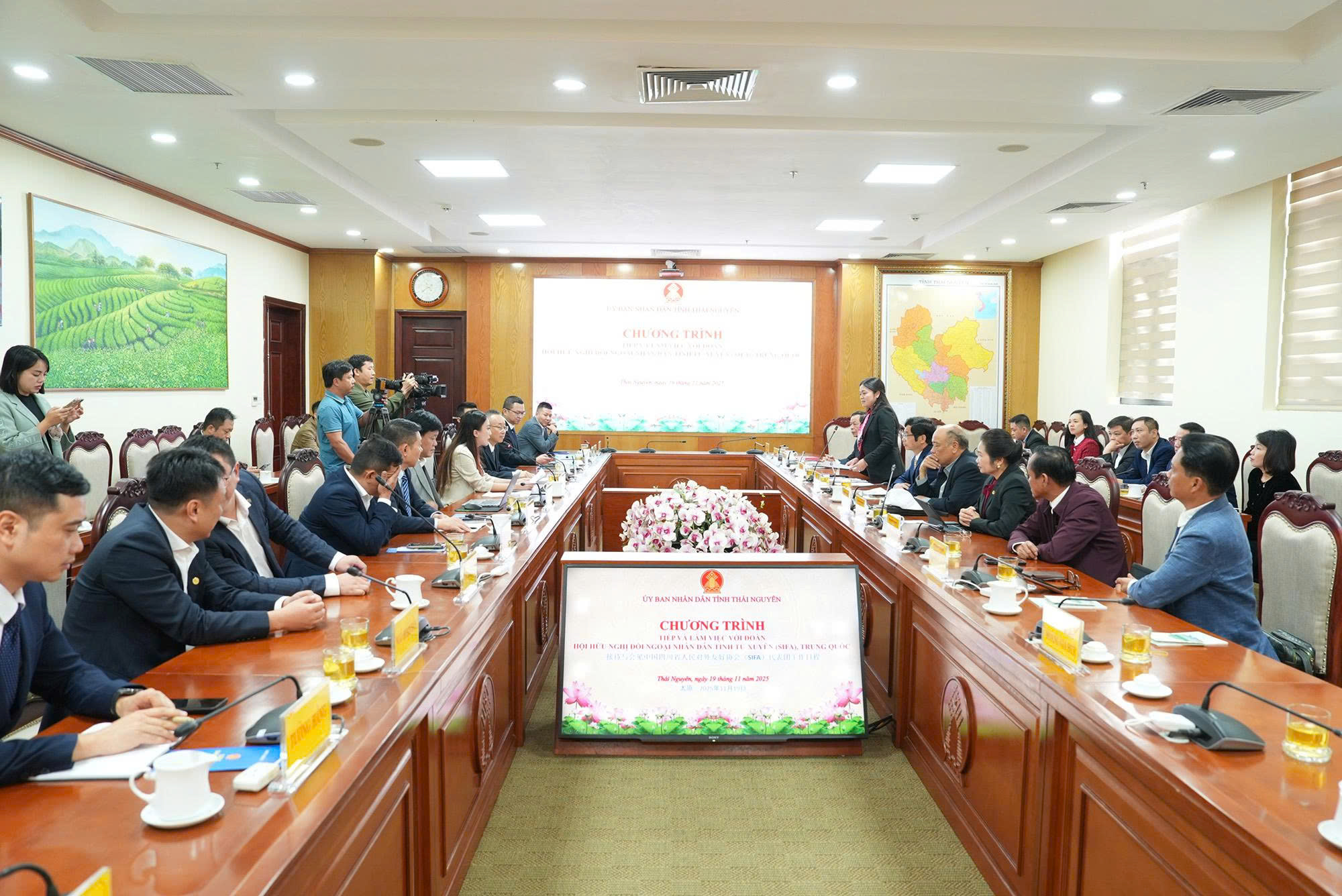 Sáng 19/11, Đoàn công tác của Hội Hữu nghị đối ngoại nhân dân tỉnh Tứ Xuyên (SIFA), Trung Quốc do ông Hoàng Vĩ – Phó Chủ tịch Hội – là Trưởng đoàn đã có chuyến thăm và làm việc tại tỉnh Thái Nguyên nhằm thúc đẩy hợp tác hữu nghị và xúc tiến đầu tư. Đây là hoạt động đối ngoại quan trọng nối tiếp sau khi hai địa phương ký Ý định thư thiết lập quan hệ hữu nghị vào tháng 11/2024.