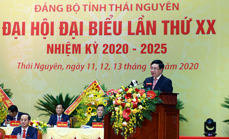 Thay mặt lãnh đạo Đảng, Nhà nước, Phó Thủ tướng Phạm Bình Minh chúc mừng, biểu dương những thành tựu đáng tự hào mà Đảng bộ, chính quyền và nhân dân các dân tộc tỉnh Thái Nguyên đã đạt được trong năm năm vừa qua, nổi bật là tốc độ tăng trưởng kinh tế đạt trên 11%/năm (cao hơn mức bình quân chung của cả nước); khu vực công nghiệp-xây dựng có bứt tốc, tạo sự chuyển biến mạnh mẽ về cơ cấu kinh tế theo hướng công nghiệp hóa.