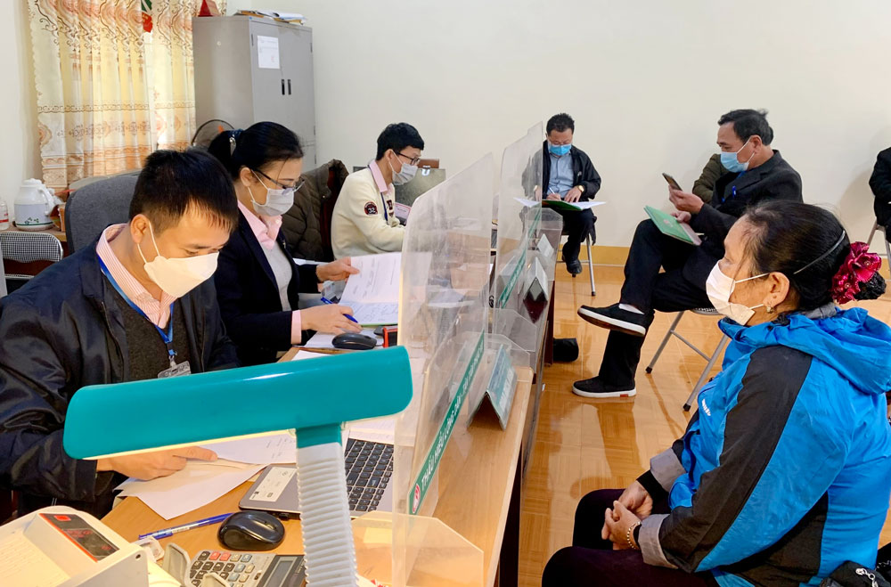 Hiện, NHCSXH tỉnh thực hiện cho vay 17 chương trình. Trong ảnh: Phòng Giao dịch NHCSXH huyện Đồng Hỷ thực hiện giao dịch tại xã.