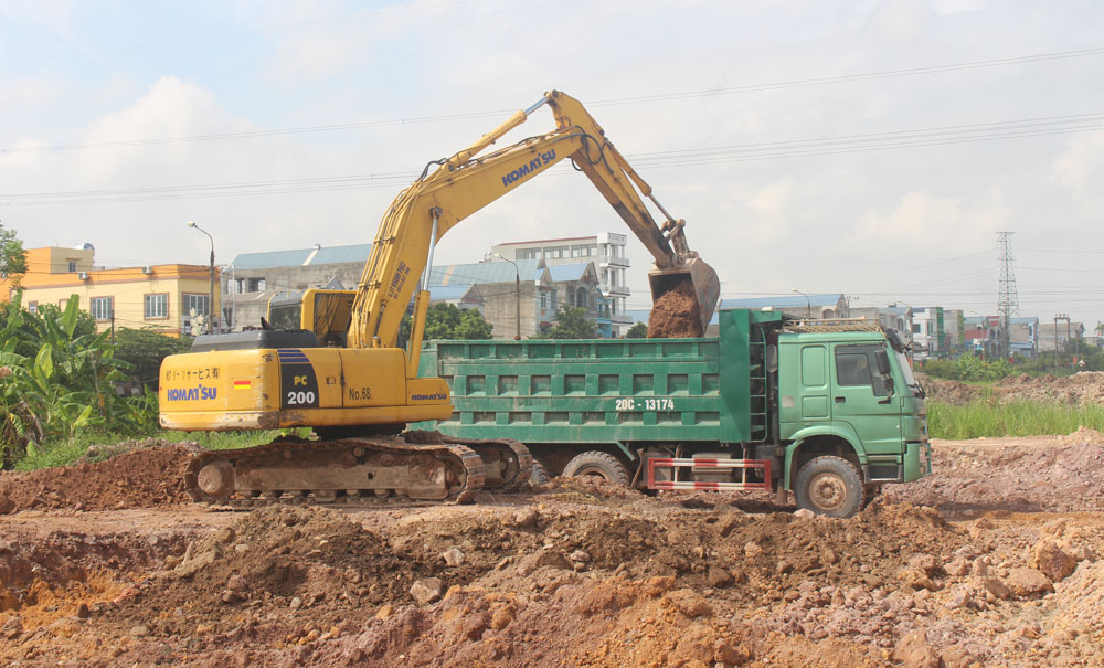 Việc thu hút các dự án đầu tư góp phần giúp T.P Sông Công tăng nguồn thu ngân sách. Trong ảnh: Thi công Dự án Khu đô thị Cầu Trúc, thuộc phường Bách Quang.