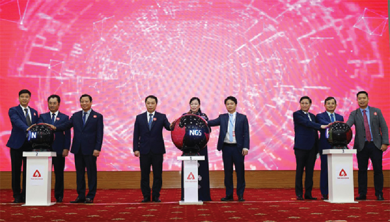Lãnh đạo tỉnh và các đại biểu bấm nút khai trương nền tảng xã hội số Thái Nguyên ID