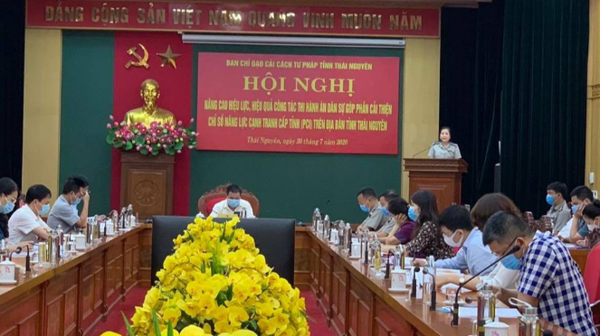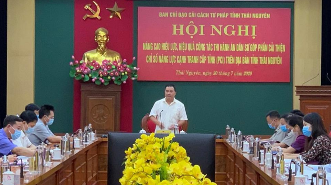 Phát biểu tại Hội nghị, Phó bí thư Thường trực, Chủ tịch Hội đồng nhân dân, Trưởng ban Chỉ đạo Cải cách tư pháp tỉnh Bùi Xuân Hoà cho rằng, những năm gần đây, chỉ số “Thiết chế pháp lý và An ninh trật tự” của tỉnh Thái Nguyên luôn được cải thiện, có thứ hạng cao và có xu hướng bền vững: Năm 2017 đạt 6,42 điểm (xếp thứ 12), năm 2018 đạt 6.40 điểm (xếp thứ 21); năm 2019, đạt 7,13 điểm (xếp thứ 15). Trong kết quả xếp hạng 10 chỉ số thành phần PCI của tỉnh thì chỉ số “Thiết chế pháp lý và An ninh trật tự” là một chỉ số ổn định và được đánh giá cao (thường xếp thứ 3/10 chỉ số thành phần của tỉnh). Riêng đối với chỉ tiêu liên quan trực tiếp đến hoạt động thi hành án dân sự “Phán quyết của Tòa án được thi hành nhanh chóng” những năm gần đây thi hành án dân sự tỉnh Thái Nguyên luôn nằm trong tốp đầu so với toàn quốc: Năm 2017 đạt 74% (xếp thứ 10), năm 2018 đạt 84% (xếp thứ 1), năm 2019 đạt 80% (xếp thứ 9). Tuy nhiên, thời gian qua công tác thi hành án dân sự còn bộc lộ một số tồn tại, hạn chế, khó khăn, vướng mắc, làm giảm hiệu lực, hiệu quả và niềm tin của doanh nghiệp đối với hoạt động này.
