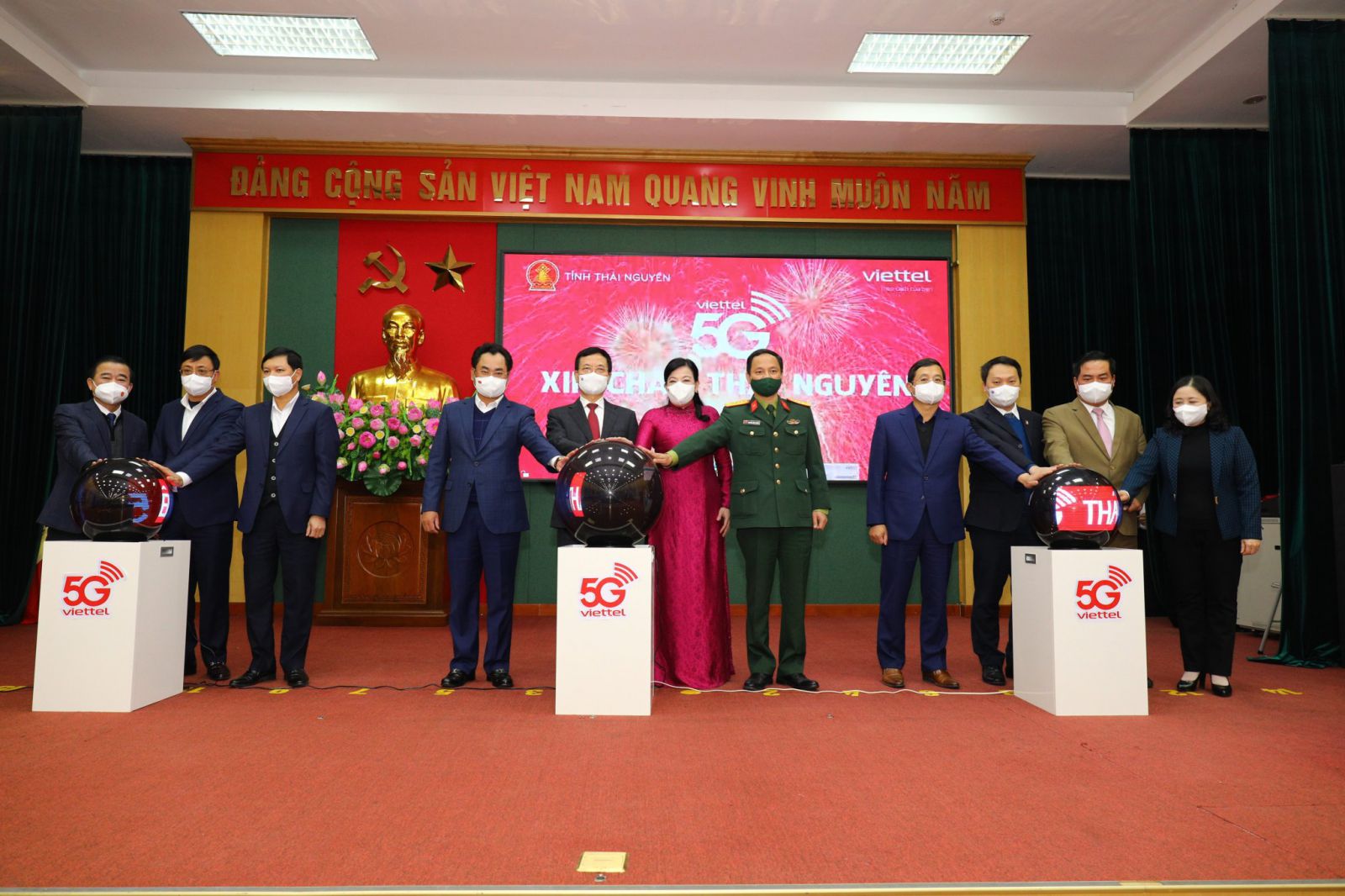 Đồng chí Nguyễn Mạnh Hùng, Ủy viên Trung ương Đảng, Bộ trưởng Bộ Thông tin và Truyền thông, đồng chí Nguyễn Huy Dũng, Thứ trưởng Bộ Thông tin và Truyền thông cùng đại diện Ban lãnh đạo tỉnh Thái Nguyên và Tập đoàn Công nghiệp- Viễn thông Quân đội, đã thực hiện nghi thức bấm nút khai trương mạng 5G Viettel.