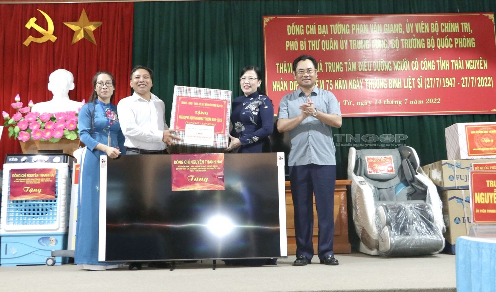 Bí thư Tỉnh ủy Nguyễn Thanh Hải và Chủ tịch UBND tỉnh Trịnh Việt Hùng tặng quà Trung tâm Điều dưỡng người có công tỉnh Thái Nguyên
